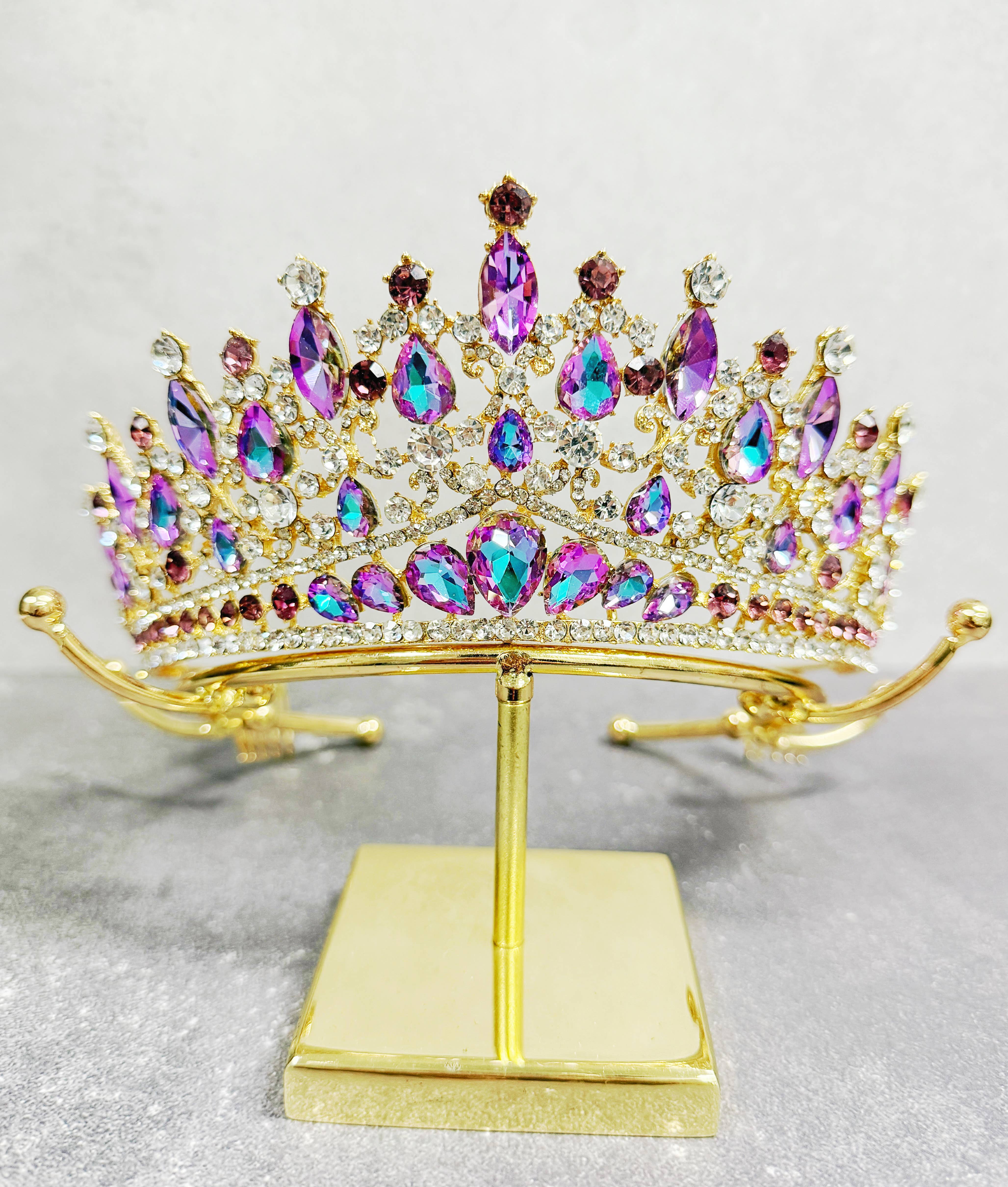 Crystal Tiara Crown HT0879 (1pc) Color : Gold Rainbow, Gold Crystal, Gold Fuchsia, Gold Green, Gold AB Black, Gold Royal, Gold Red, Peach, Silver Rainbow, Silver Aqua, Silver Crystal, Silver Lavender Size : Hi: 2.5 inch , Headband size: 6 x 6 inch Free Size HT0879-GAB HT0879-GCR HT0879-GGR HT0879-GAB HT0879-GRB HT0879-GSL HT0879-PPH HT0879-SAB HT0879-SAQ HT0879-SCR HT0879-SLV HT0879-GBK HT0879-SPU HT0879-SLR HT0879-SMO HT0879-SJT