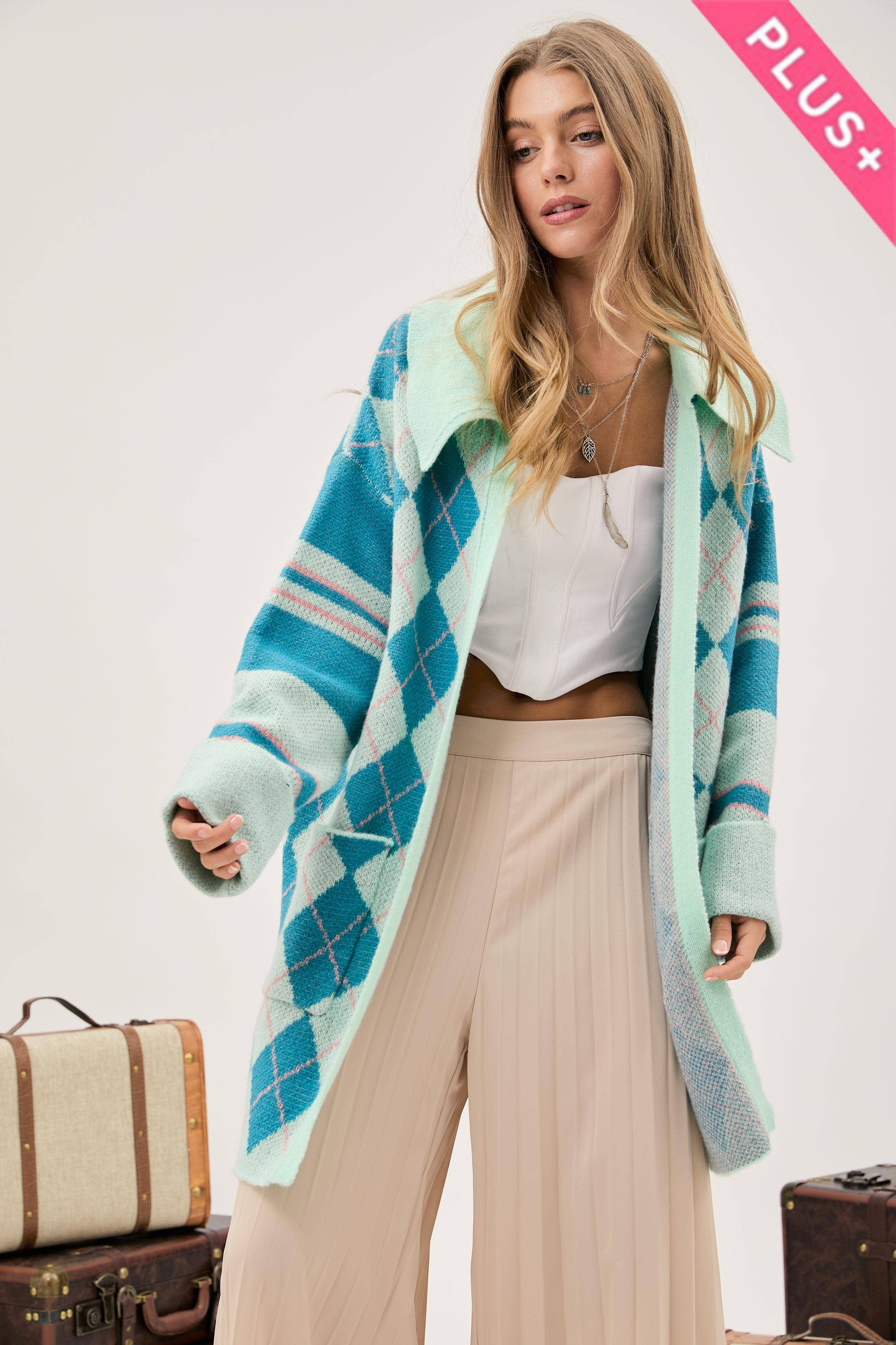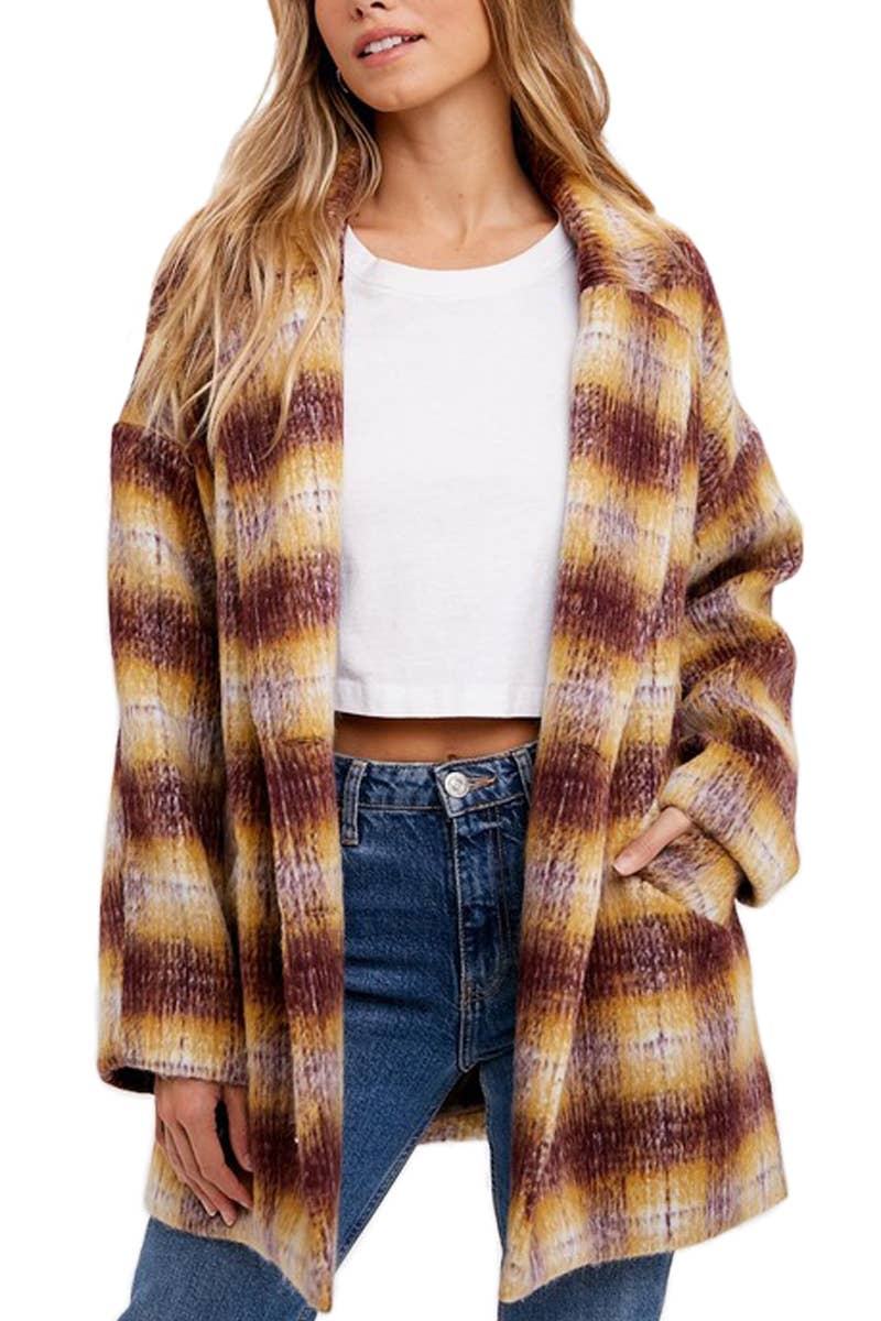 Houndstooh Lapel Front Open Coat YHZY031