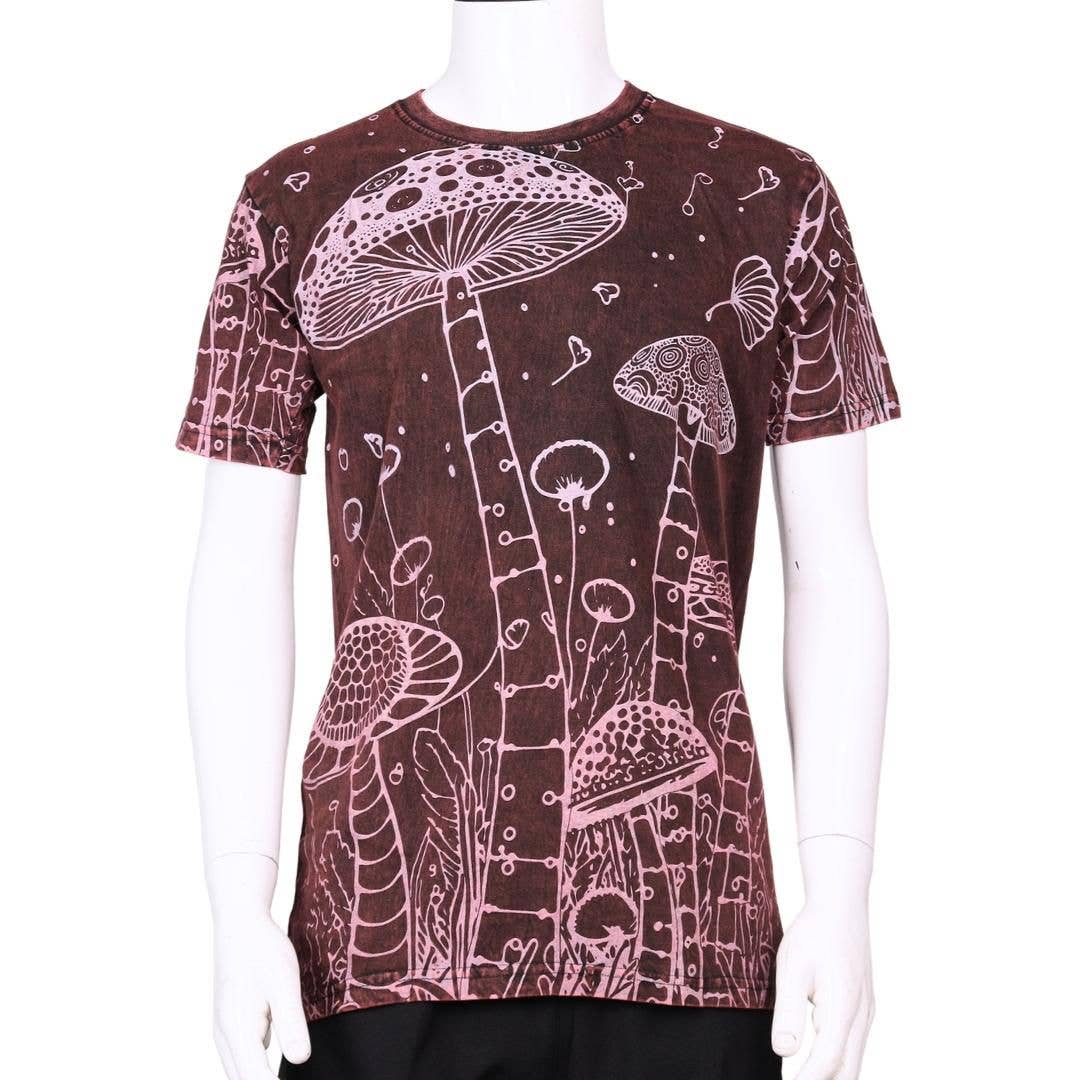 Step into the woods with our Mushroom Forager Organic T-Shirt. This unisex tee celebrates the magic of the forest with its SEEK AND YOU WILL FIND message and a medley of edible mushrooms, including morel, porcini, chanterelle, and more. Hand screen printed in the USA, this mushroom t-shirt channels groovy forager energy and the spirit of discovery with every wear. Perfect for nature walks, forest festivals, or anyone who knows that the best treasures hide among the trees. 100% Organic Cotton. Black. Made in the USA. Mushrooms Recycled T-Shirt - Unisex - Mushroom T-Shirt | Forager T-Shirt | Soul Flower Our organic cotton and natural fiber blends make our tees extra soft and easy to wear. 100% made and screen-printed in the USA, these graphic tees feature original artwork inspired by everyday life, time outdoors, music, and simple moments, with an easygoing hippie spirit throughout. The unisex fit is comfortable and easy to wear. Soul Flower tees feel right at home in souvenir shops, food co-ops, museum stores, and boho gift shops where customers enjoy browsing, discovering, and choosing things with a story behind them. Looking for a mushroom tee, a peace t-shirt, or something with a little inspiration woven in? You’re in the right place! Size & Fit (Unisex Cut): Small - Chest: 34-36" Length: 27" Medium - Chest: 38-40" Length: 28" Large - Chest: 42-44" Length: 29" X-Large - Chest: 46-48" Length: 30" XX-Large - Chest: 50-52" Length: 31" Fabric & Care 100% Organic Cotton GOTS Certified Made in the USA Knit fabric Fabric weight: 4.4 oz/sq yd Machine wash cold. Tumble dry low or line dry.