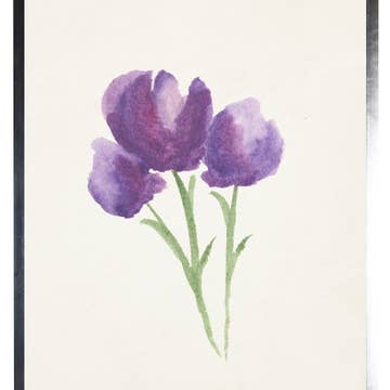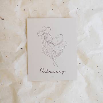 This beautiful 5"x7" February Birth Month flower watercolor art print features vibrant purple violets and hand-lettered script reading the month and flower name beneath it. The 5x7 size makes it an easy-to-frame piece, or perfect for mailing. It is printed on recycled, high-quality, linen-texture card stock with vibrant ink and comes in a clear sleeve with a stiff backing for protection while displaying.