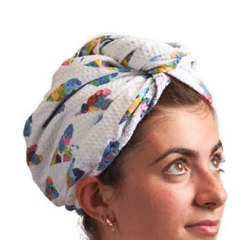 Beautifully packaged for retail in a iridescent box with a how-to infographic on the back. Reduce drying and styling time by using our super soft and absorbent Towel Twist. Luxurious microfiber quickly dries your hair faster and more comfortable than traditional towels.