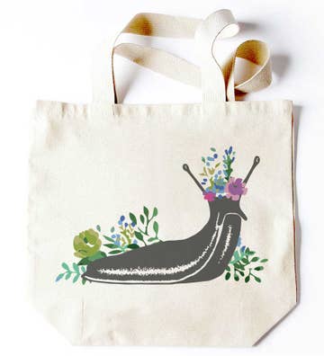 100% cotton canvas jumbo tote with screenprint on front. Tote measures 20"W x 15"H x 5"D and has a full top zipper, as well as an interior zippered pocket. 23" straps.