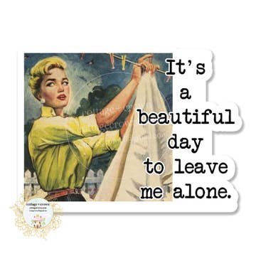 ired of toxic positivity? Same. This 3x3" matte decal delivers the perfect blend of sass and vintage charm with a cross-stitch-style design that says what we’re all thinking: “Live, Laugh, Leave Me Alone.” Printed on durable, weatherproof vinyl with a soft matte finish — it’s perfect for water bottles, laptops, journals, or your front door (if you’re feeling bold). Let your boundaries be known, one polite stitch at a time. Details: – 3" x 3" size – Matte finish – Waterproof & scratch-resistant vinyl – Dishwasher safe
