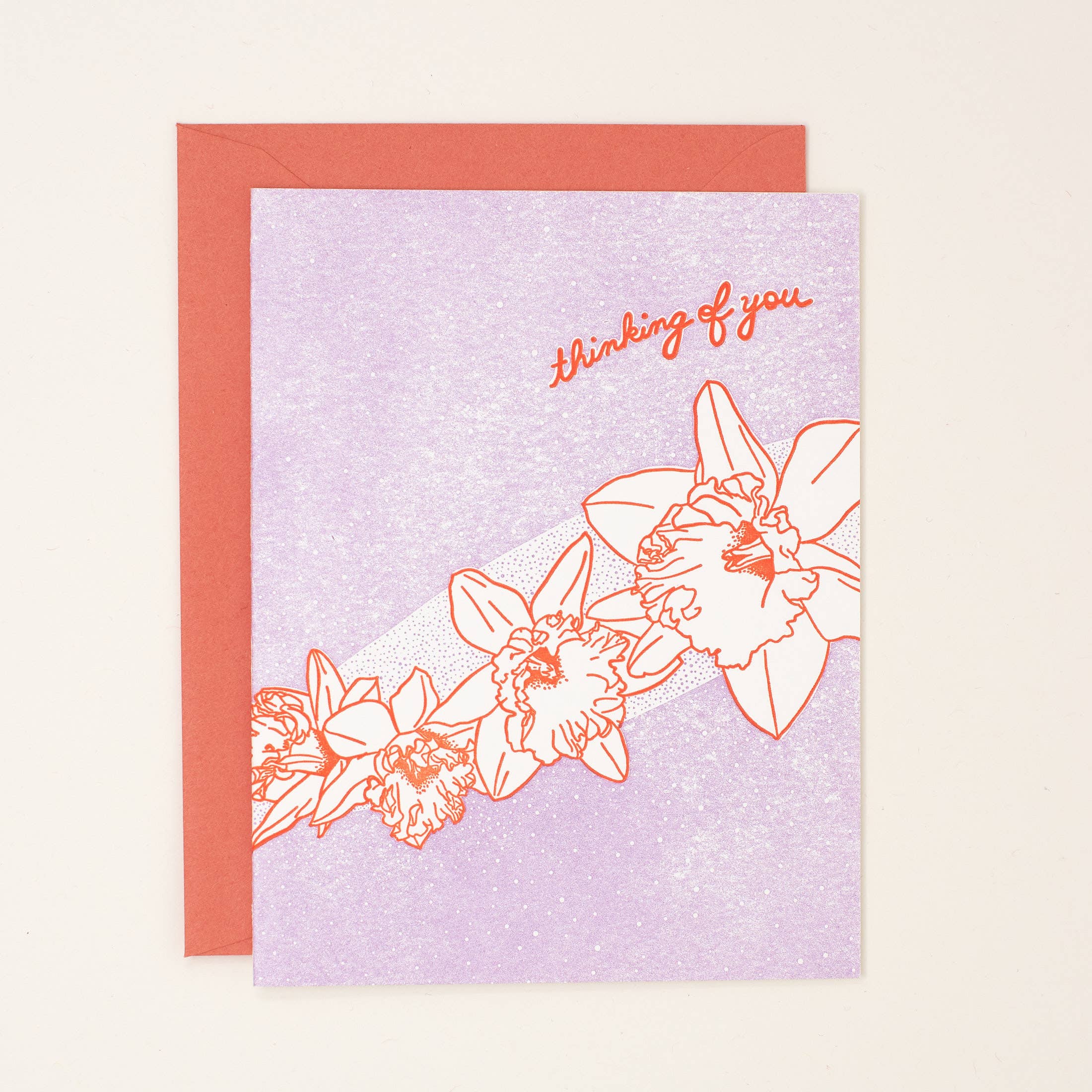 This letterpress-printed card features a hand-carved linoleum block print of a dragonfly in navy ink, and the hand-lettered words "thinking of you" in purple. This image was inspired by my "Be guided by your dreams not your worries" art print. Blank inside. Includes kraft envelope. A2 size.