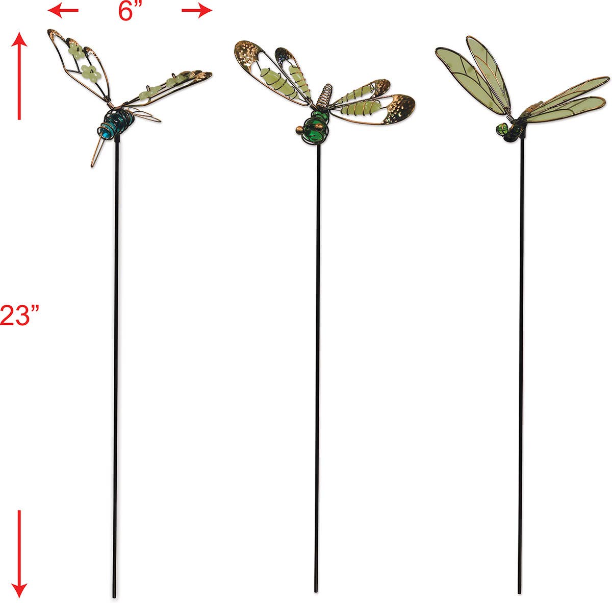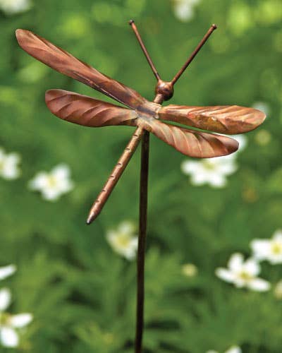 Natural Copper Dragonflies are made of 100% copper. * size 2.5 inch diameter on 18" stick * natural copper will patina over time * Weather resistant * Use indoors or out * Made in USA * MSRP $4.75 * Min 6Â Makes a lovely keepsake in memorial plants and flowers. Looks great coupled with small butterflies and flowers. The dragonfly is a symbol of change, rebirth, and transformation. A perfect holiday or Christmas gift for your favorite gardener or anyone who loves dragonflies! Would make cute stocking stuffers, a package tie on or added to a seasonal plant.