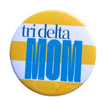 2.25 inch pin-back button letting everyone know your sorority affiliation in fun button in bold lettering and house colors. This is a perfect addition to a backpacks, tote bags or a day of tailgating with your friends.