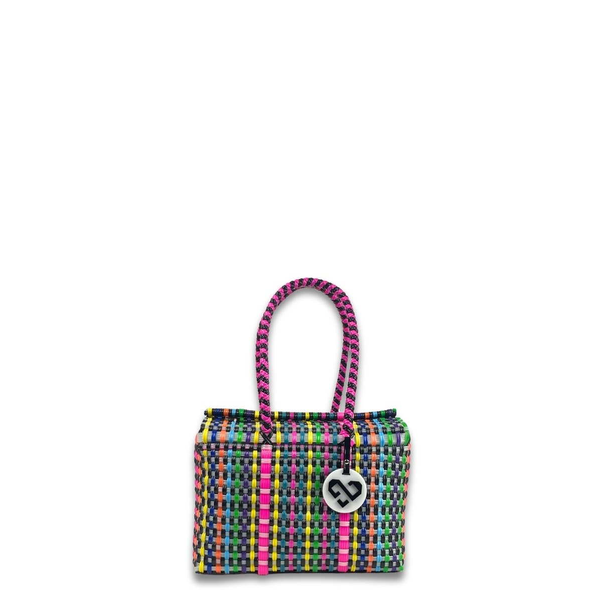 This handwoven M tote bag is an artisan-made masterpiece crafted from 100% recycled plastic. Featuring a stunning one-of-a-kind design and comfortable handles, these sustainable Mexican bags are lightweight, waterproof, and perfect for beach trips, farmer's markets or running errands. Each one represents creativity and a commitment to the environment, enabling you to showcase your individuality while making a positive impact on our planet. Measurements: Height: 13 in Depth: 7 in Length: 13.5 Handles: 10.5 in