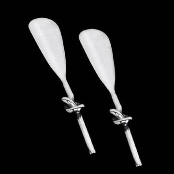 Handmade ceramic butter knife, measuring approx. 5 inches. Finished with a food safe shiny white glaze and recycled bamboo cord for optional hanging/display. Each butter knife is handmade- slight variation will occur in shape and form.