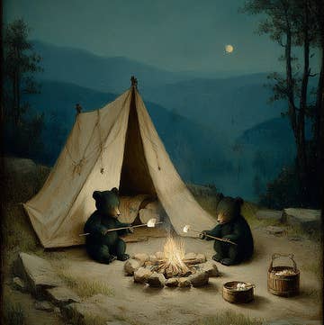 Bonfire Mornings Card is a reproduction of my original gouache painting. Shown in the paining are two woodland animal friends (fox and bear) starting their morning around a campfire drinking coffee and cooking. If you have a friend that loves camping in the outdoors, this would make a great card for them for any occasion. Reproduction of my original artwork using a combination of gouache paints and colored pencils.  It is printed on Premium Presentation Matte Paper using high quality inkjet inks and signed on the back. Your print will be carefully packaged with an archival backing board in a protective cellophane cover, then wrapped in bubble wrap all inside a rigid mailer to ensure it's protected during shipping.
