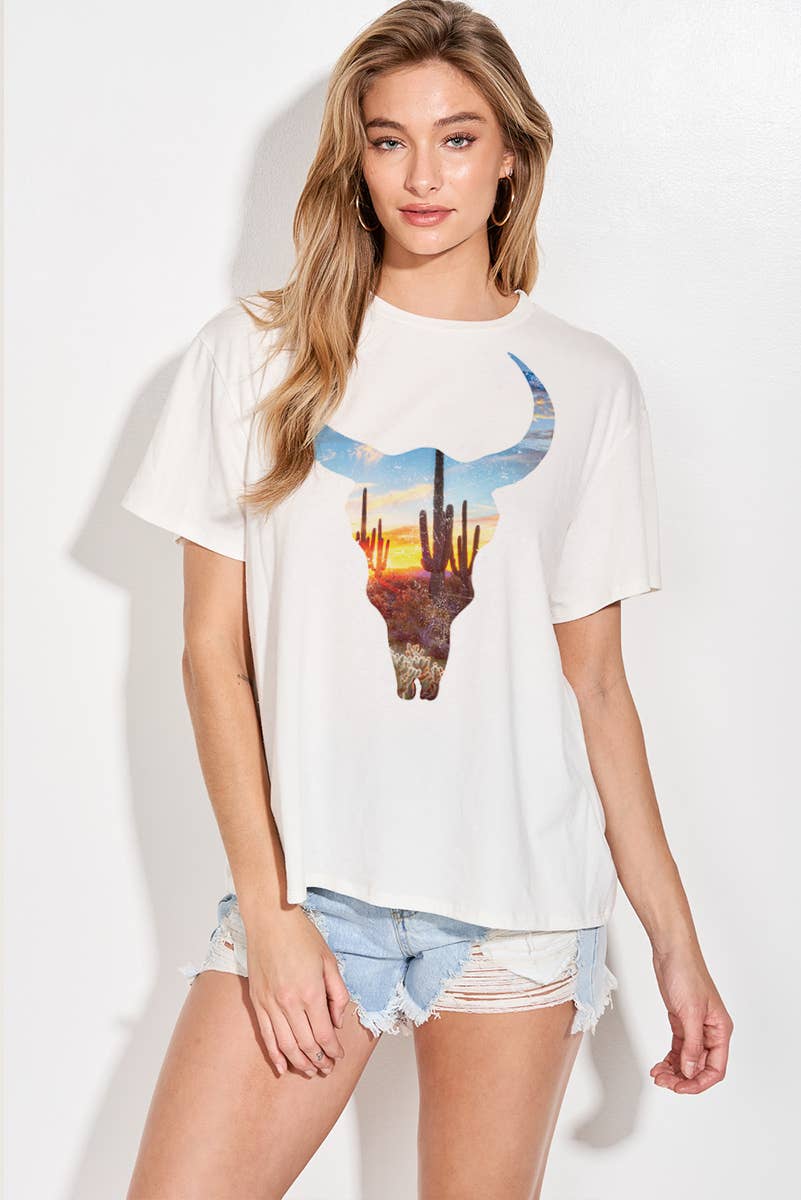 Wholesale Free Spirit Wild West Boho Bull Western Unisex T Shirt Women