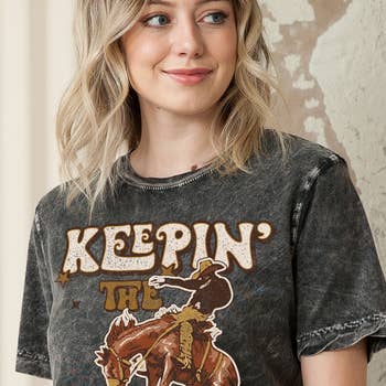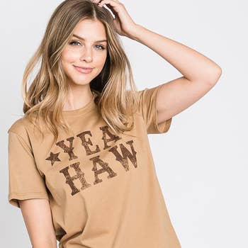 Embrace the spirit of the west with Avery's AV1205-NICOLE Western Graphic Basic T-Shirt. This piece is more than a simple tee; it's a celebration of relaxed style and casual comfort. The graphic pattern adds an element of fun to the traditional short-sleeved T-shirt, making it a standout piece in any wardrobe. This shirt is perfect for women who want to express their unique style and confidence. With Avery's commitment to creating pieces that uplift the soul, this T-shirt is not just a piece of clothing, it's a testament to the joy of self-expression. Let this tee be your next wardrobe companion for creating unforgettable moments.