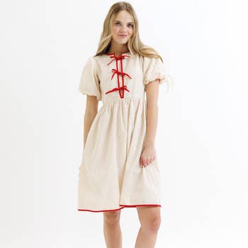 Bell sleeve mini dress, with big open back. Model is 175 cm and wearing size S.
