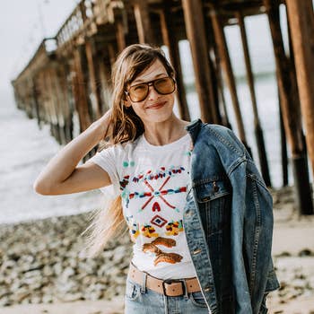 Embroidered detailing on our fitted tee; natural with black thread. 95% cotton / 5% spandex Available in Women's sizes S, M, L, XL, XXL. Measurements S: 25.5" long by 16" wide M: 27" long by 17" wide L: 27.5" long by 18" wide XL: 28" long by 19" wide XXL: 29" long by 20" wide Also available on a v-neck tee, please see separate listing. We recommend washing in cold water, on the delicate cycle. Tumble dry low heat.