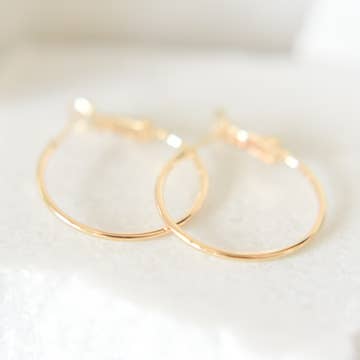 One of our top 5 bestselling styles year over year, these lightweight earrings are a perfect minimalist essential for your jewelry collection. We love these effortless everyday hoops! A single piece of wire is hand shaped and hammered into an organic shaped circle, measuring 1.4" tall by 1.4". Each one is made by hand so these measurements will vary slightly. Size: 1.4" across. Packaging: Letterpress Earring Card All components are sterling silver and gold filled, nickel free Handmade in our Nashville TN Studio by an all-woman team wire jewelry | hammered jewelry | classic handmade jewelry | made in Tennessee | sterling silver | gold filled | demi-fine | handcrafted | artisan jewelry | dainty jewelry | minimalist jewelry | silver earrings | gold earrings | handmade hammered hoop earrings