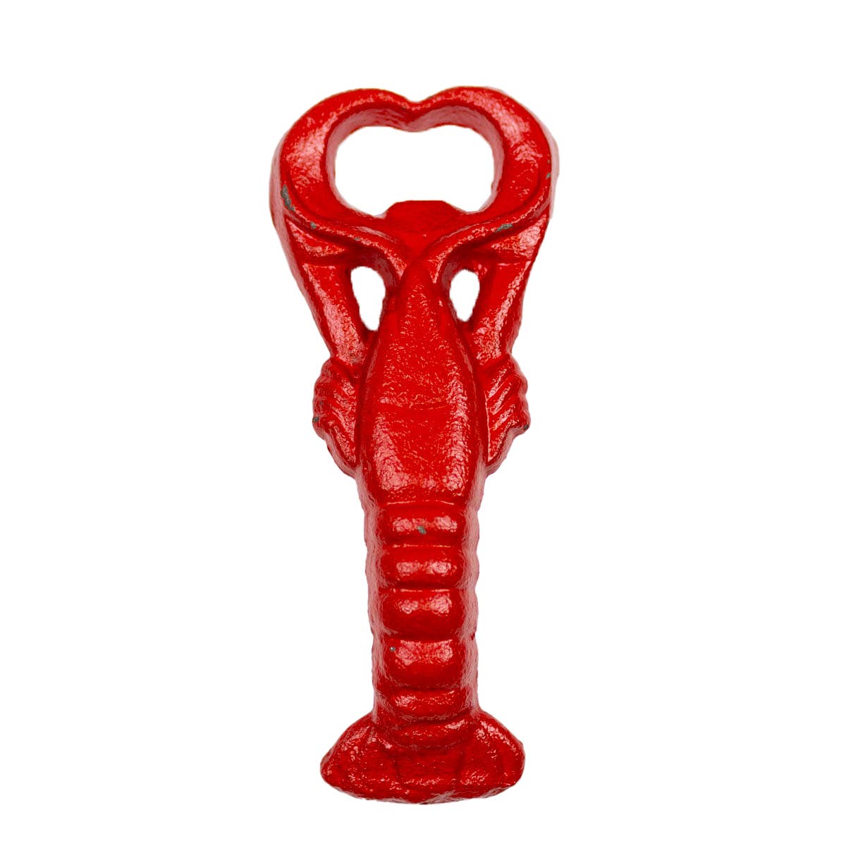 CAST IRON LOBSTER HAND HELD BOTTLE OPENER. 5 1/4" LONG, AND LOBSTER RED COLOR.