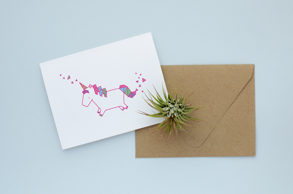 Greeting Card. Size: A2. Interior: Blank. Paper: 80 lb natural cardstock. Envelope: Kraft brown.