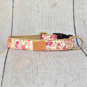 Handcrafted dog collar made with sturdy materials for washing and selected quality cotton fabrics. Collar feature plastic quick-clip buckles to quickly and conveniently remove the dog collar. Leashes are made of cotton with durable interfacing and snap hook.