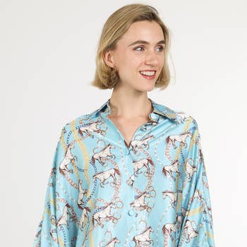 Printed Button Up Frill Collar Babydoll Blouse CY127