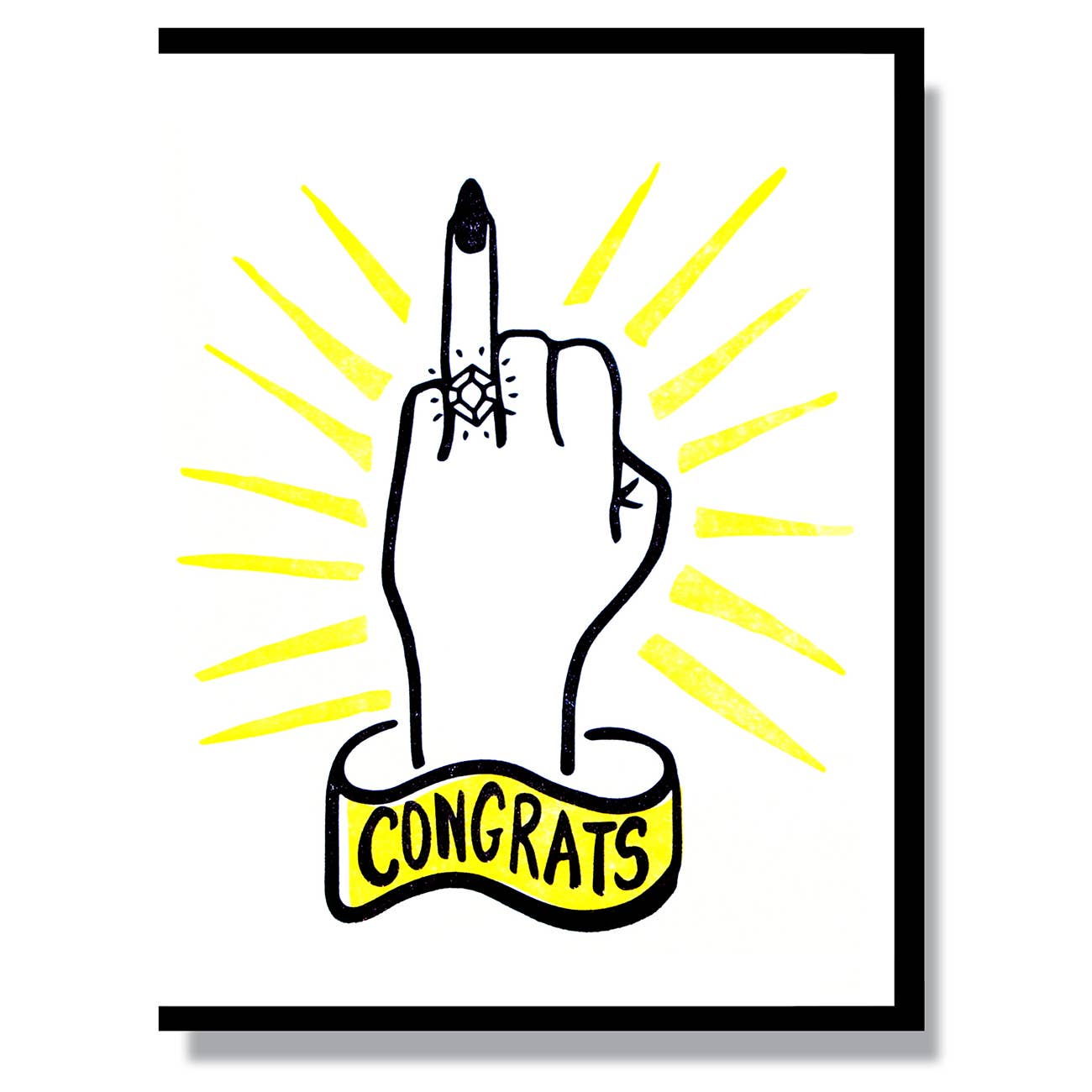 SKU: LP-CONGRATS Made in Canada Card Count: 1 Finish: Letterpress Is Set: Individual Occasion Theme: Congratulations Season: Year-Round Special Feature: Blank Tone: Funny Product Language: English Weight: 13.1 g (0.46 oz) Dimensions: 15.2 x 11.4 x 1.3 cm (6 x 4.5 x 0.5 in)