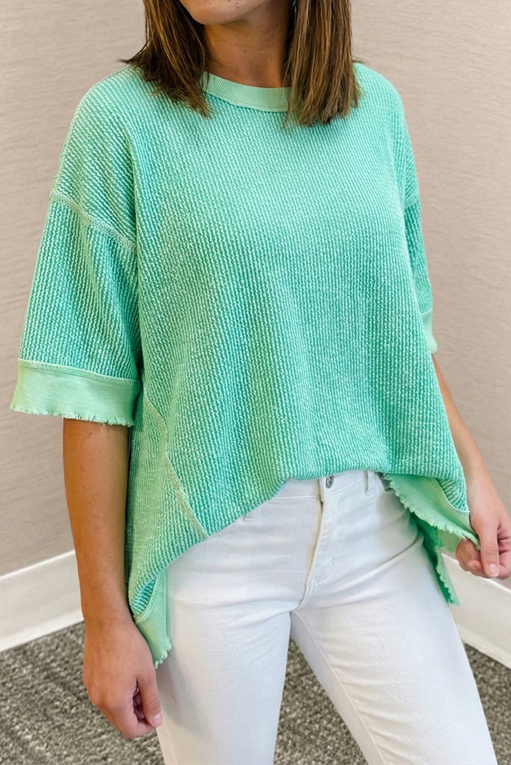 ***Image usage is allowed to the buyers who purchase from us via Faire only. SI-26247 Back Patch Crinkle Washed Raglan Sleeve Tshirts - ACID WASH - ARC HEM - EXPOSED SEAM * Each item is unique, expect variations in color and finishing TOTAL BODY LENGTH: 25.5", BUST: 42" approx.- MEASURED FROM SMALL Material: 100% COTTON BrandBestseller