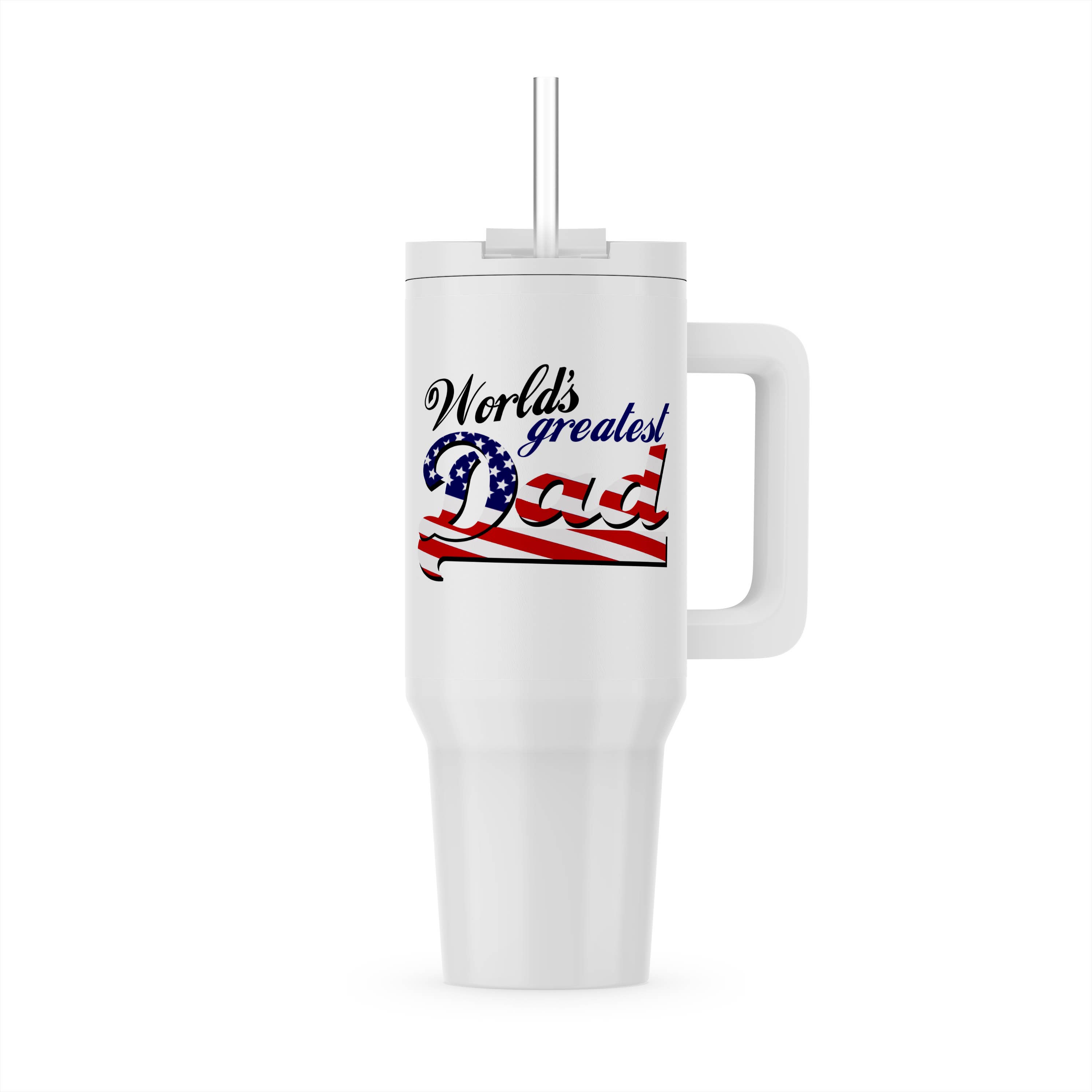 38 ounces includes reusable plastic straw all-day chill or heat stainless steel interior dishwasher safe screw-on ridged top with straw opening adjustable straw cover for easy travel easy-to-hold handle fits in car cup holder (3” diameter at base)