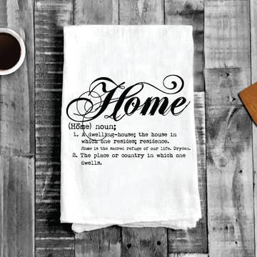 "it's good to be home" tea towel - comes in a pack of 6. These tea towels are 100% Cotton and measure 27 inches x 27 inches. Manufactured using 100% pure ring spun cotton and knitted in a diagonal fashion, the soft and absorbent fabric makes these towels quick drying, highly absorbent and high in quality. Lightweight and lint-free, the professionally hemmed edges are carefully graded for quality control, and product durability; easily washable, the towels maintain an excellent quality even after multiple washes. They will resist shrinking and minimize lint.