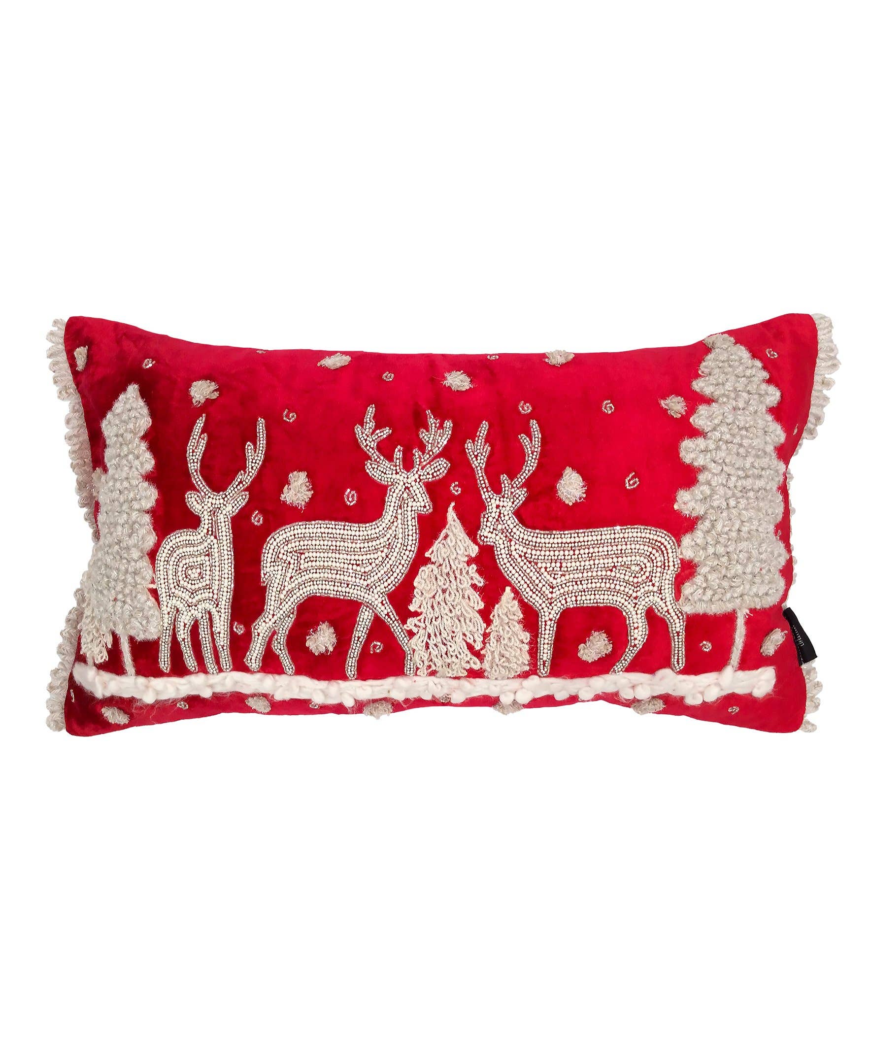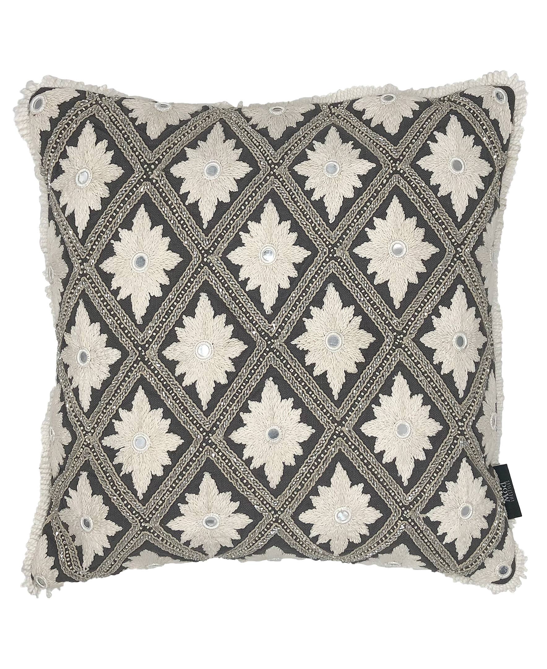 Diamond Beads Embroidery Pillow with Fringe Product Dimension: 14" X 20" Shell: 100% Cotton, Insert: Polyfill (additional cost for Down Feather Fill) The dense embroidery of beads and pearls in two large diamond formation speaks of sophistication and superb craftsmanship. Elevate your bedroom from simple to an overall interesting style. Put it on your sofa or bring it to your bedroom and back. Value-added Quality Insert included Zip Enclosure Spot Clean Only Imported SKU#: PI-21-2039 UPC 810012744799