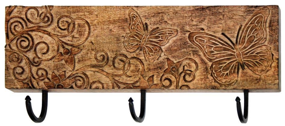 Our triple hook coat racks are exquisitely handcrafted from sustainable mango wood by artisans in India using the same time-honoured methods practiced since the 1600s.