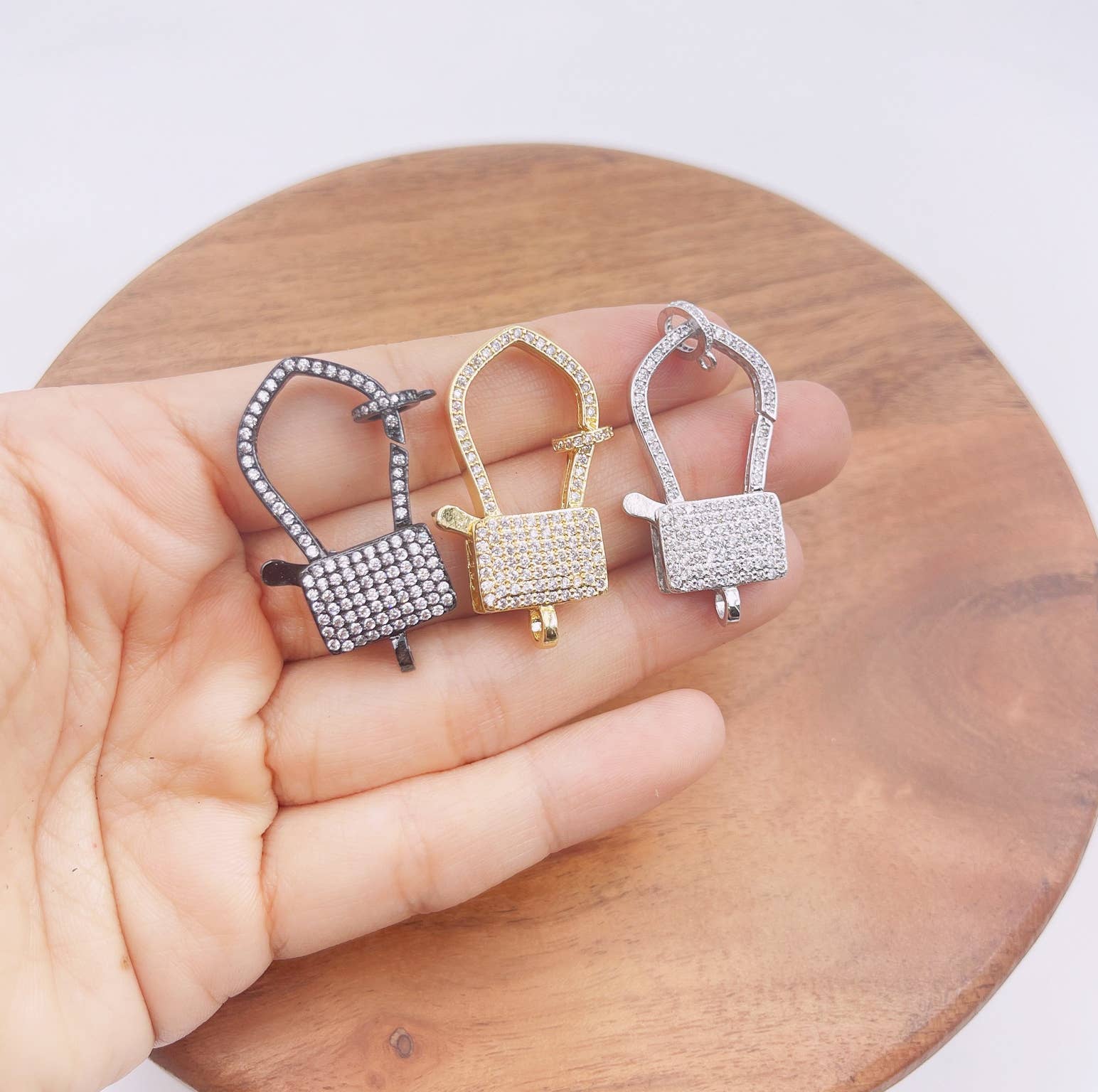 Qty:1pc Material: Copper and Cubic Zirconia Size: 16x26mm Weight: 3.2g Description: Silver, 24k Gold, rose gold, and Black Rhodium Plated over Copper, Micro Pave with Cubic Zirconia Usage: For bracelet, necklace, or other crafts, jewelry makings Rhodium plated findings have precious metal look. Exquisite craft and unique designed, use it as necklaces, bracelets or earring components. -------------------------------------------------------- *Lead Free & Cadmium Free & Nickel Free* *All sizes are approximate ***Please conv. me if you need quantity discount.Note: For Gemstone beads, the hole size is approximate. For smaller size beads e.g., 2mm, 3mm, hole size is less than 1mm.