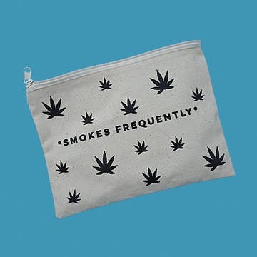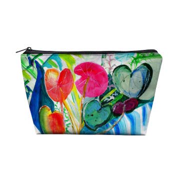 Zipper pouch can be used as a cosmetic bag, pencil case or general catch all. Design on front side only. Back side is all black. Measures 8.5"W x 6.2"H.