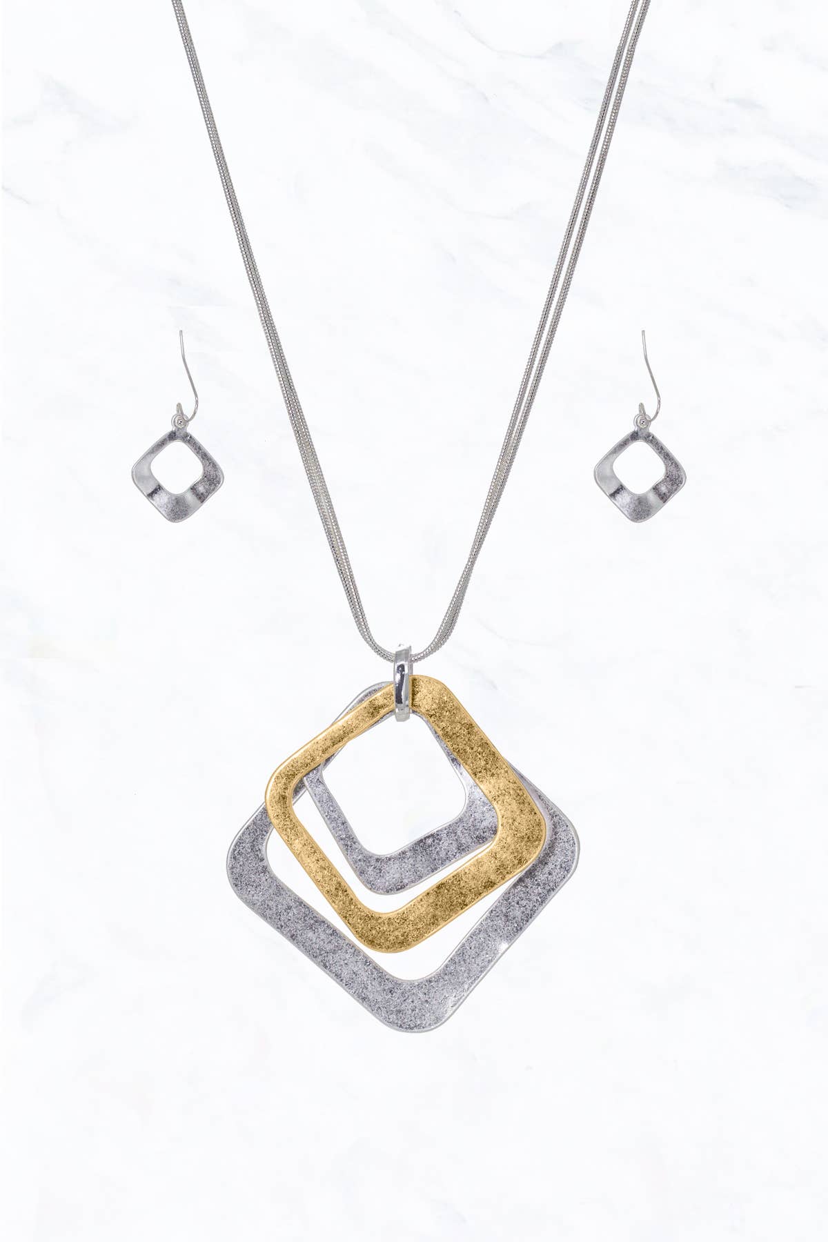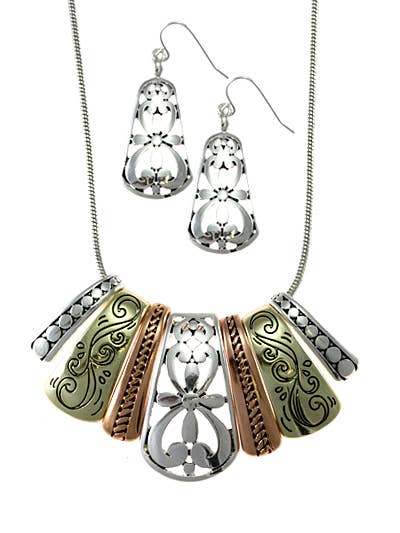 Wholesale FR2425 Gold Tree of Life Tri-Tone Rectangle Necklace Set