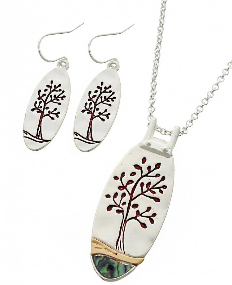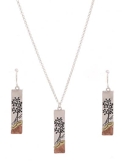 FR2425 Gold Tree of Life Tri-Tone Rectangle Necklace Set