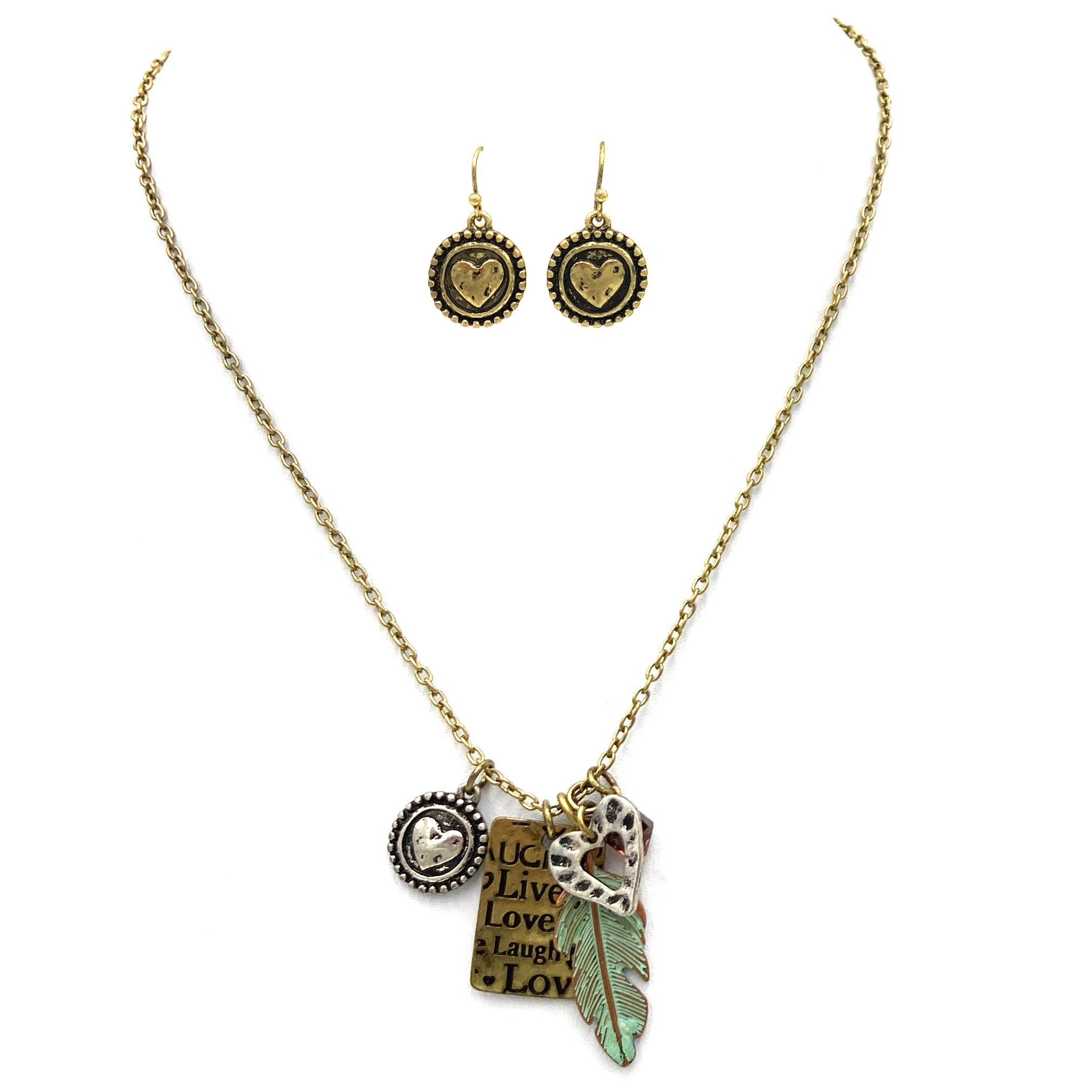 Antique Gold Tree of Life Tri-Tone Metal Long Rectangle Necklace & Earrings Set FR2418 Silver Tree of Life Tri-Tone Rectangle Necklace Set FR2419 Glitter Tree of Life Tri-Tone Rectangle Necklace Set FR2420 Green Tree of Life Tri-Tone Rectangle Necklace Set FR2421 Pink Tree of Life Tri-Tone Rectangle Necklace Set FR2422 Turquois Tree of Life Tri-Tone Rectangle Necklace Set FR2423 Patina Tree of Life Tri-Tone Rectangle Necklace Set FR2424 Worn Silver Tree of Life Tri-Tone Rectangle NK Set Tri-Tone Jewelry In Many Cultures, Tree of Life Is Recognized as The Symbol of Immortality and Eternal Life. It Also Signifies Wisdom, Knowledge and Enlightenment Length : 16" + EXT Pendant : 5/8" X 2" Earring : 3/8" X 1 1/2" Material : Metal Earring Closure : Fish Hook Zinc, Hook: Brass Lead, Nickel & Cadmium Free