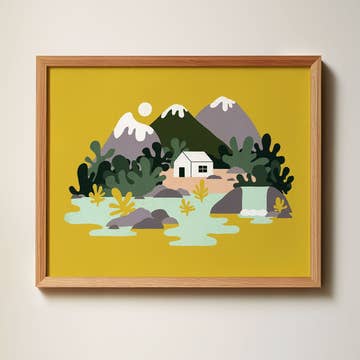 Artwork Details: Beacon Rock has always felt like a quiet witness to deep time. In this digital collage, I layered greens and blues from the Gorge landscape and embedded early geological accounts directly into the monolith itself, honoring the story written in stone. The words “Water Flows, Stone Remembers” drift through the background—a reminder that while water is always moving forward, the land holds memory. This piece is my meditation on endurance, change, and the wisdom of the places that outlast us. Print Details: Size: 8x10 print of my original mixed media collage artwork described above. Printed on high quality, 100 lb recycled white matte cardstock with archival ink. Small white border for framing.