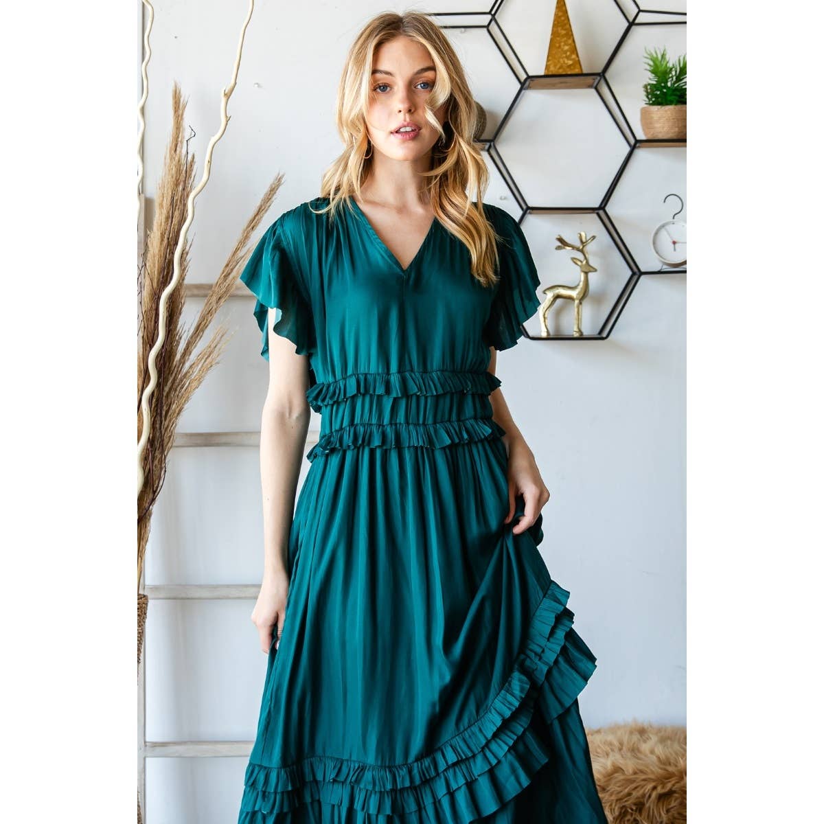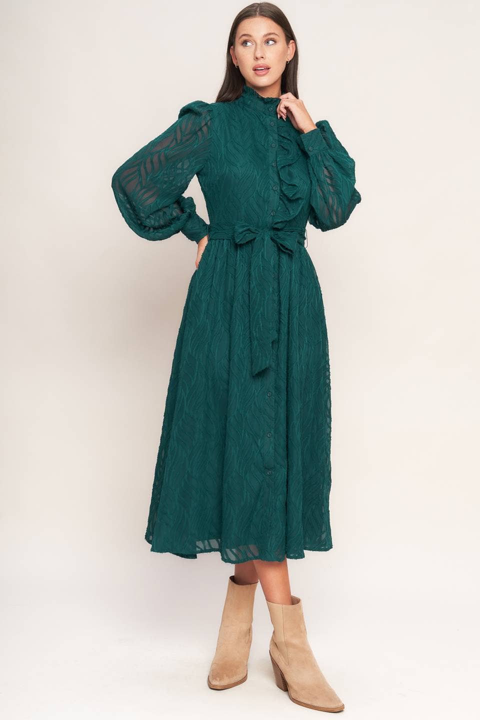 SKU Number:CF-BFZY746 This dress is a stunning option for any formal event or special occasion. This beautiful dress features a fitted bodice with intricate splicing detailing, which adds a touch of elegance and sophistication to the design. The ruffled A-line skirt flows gracefully from the waist and is crafted from velvet fabric that is both soft and comfortable to wear. The dark green color of the dress is a perfect match for any skin tone and will help you stand out in a crowd. Size Chart (cm) Size Bust Length Shoulder Waist Sleeve S 97.0 90.0 34.0 98.0 64.0 M 101.0 92.0 35.0 102.0 65.0 L 107.0 94.0 36.0 108.0 66.0 XL 113.0 96.0 37.0 114.0 67.0 Size Chart (inch) Size Bust Length Shoulder Waist Sleeve S 38.2 35.4 13.4 38.6 25.2 M 39.8 36.2 13.8 40.2 25.6 L 42.1 37.0 14.2 42.5 26.0 XL 44.5 37.8 14.6 44.9 26.4