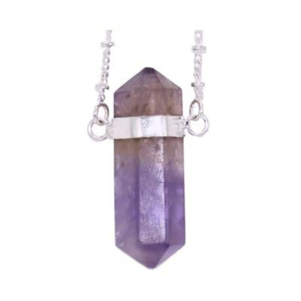 One Long Faceted Amethyst Marquise complete on an 18” stainless steel chain. February birthstone, Amethyst’s ability to expand the higher mind also enhances one’s creativity and passion. It is said to strengthen the imagination, intuition and refines the thinking processes. It helps in the assimilation of new ideas, putting thought into action, and brings projects to fruition. Amethyst pendants measure 9mm x 25mm. Shape, size, and color may vary as no two stones are alike.