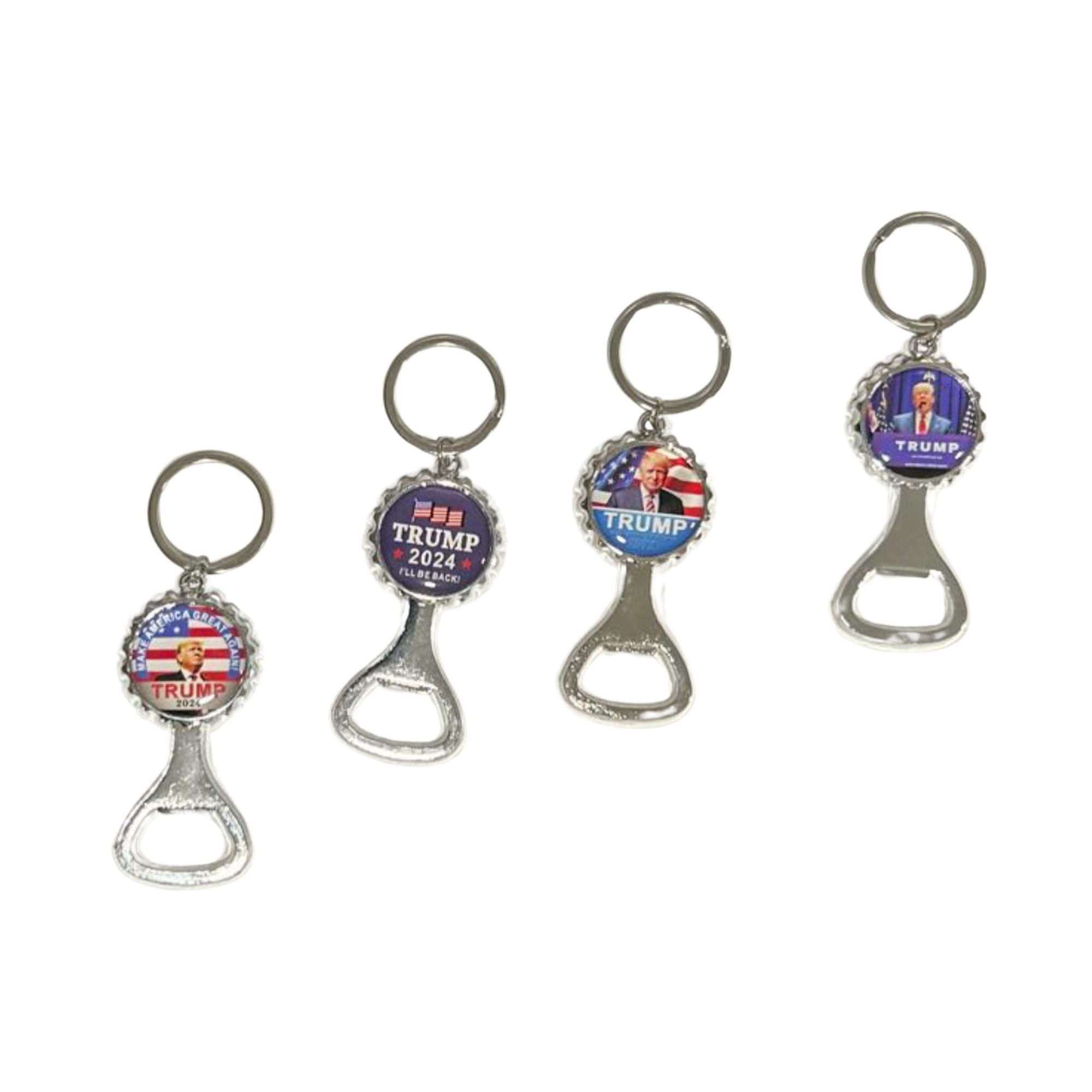 Donald Trump 2024 Keychain 4 Designs Keychain one pack Included: x12 Trump Keychain
