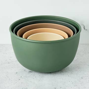 These are the classic, now iconic, melamine Margrethe mixing bowls. The heavy wall construction will hold up to the most vigorous mixing. The non-skid rubber ring bottom keeps the bowl in place, just where you want it. A comfortable handle and pouring lip add to the many features that this classic bowl provides. Each is heat resistant to 280°f. Dishwasher safe. Not for use in the microwave. Made in Thailand. BPA free. Boxed set of 3 includes a 1.5 liter, 2 liter, and a 3 liter melamine bowl.