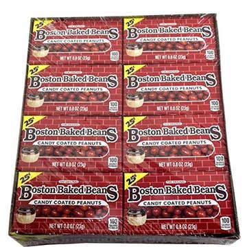 Indulge in the deliciously unique Boston Baked Beans Candy Coated Peanuts. These vibrant red candies may look like beans, but they are actually candy-coated treats with perfectly roasted peanuts inside. Each box contains 0.8 oz of these wickedly good candies, and with 24 boxes in the innerpack, you'll have plenty to share at parties or enjoy as a sweet snack. Add a fun twist to your candy buffet with Boston Baked Beans Candy Coated Peanuts!Long Island Candy Factory is open for in-store shopping at 40 Rabro Drive from 9:00 AM - 4:00 PMFor bulk sales, wholesale, or catering email us at Suffolkcandy@gmail.com