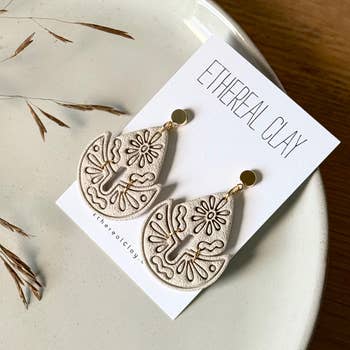 Elegant Dangle Arch Earrings - These earrings are individualy hand sculpted, color mixed and made of polymer clay, slightly flexible material. They are very light and easy to wear. No two Earrings are exactly the same, slight variations may occur. Metals used- Stainless Steel (Back Post embedded in Material for More Security and a beautiful, clean and professional look. Pieces with hooks or metal post are 18k gold plated stainless steel Or silver stainless steel.