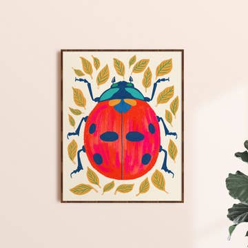 Elevate your space with the charm of nature embodied in our darling ladybug art print. This piece features a vibrant red and black ladybug adorned with a delightful Folksy floral and leaf design on its back. The yellow and green leaves add a burst of color, creating a lively and enchanting scene. Hang this in your living room for a touch of nature's beauty. • Printed with vivid colored inks on cotton canvas mounted on wood • Solid hardwood frame in shown stain colors • Sustainable American sourced wood • Made in the USA in our Utah studio • MINI 6" tall x 6" wide x 1.25" deep w/ 1/4" thick frame • SMALL 11" tall x 11" wide x 1.25" deep w/ 1/4" thick frame • MEDIUM 15" tall x 15" tall x 1.5" deep w/ 3/4" thick frame • LARGE 22" tall x 22" tall x 1.5" deep w/ 3/4" thick frame • Signs may have +/-1" variations • All signs can stand on a shelf or table (Medium & Large can also hang on a wall) • Farmhouse style frames have small rustic imperfections that make them unique