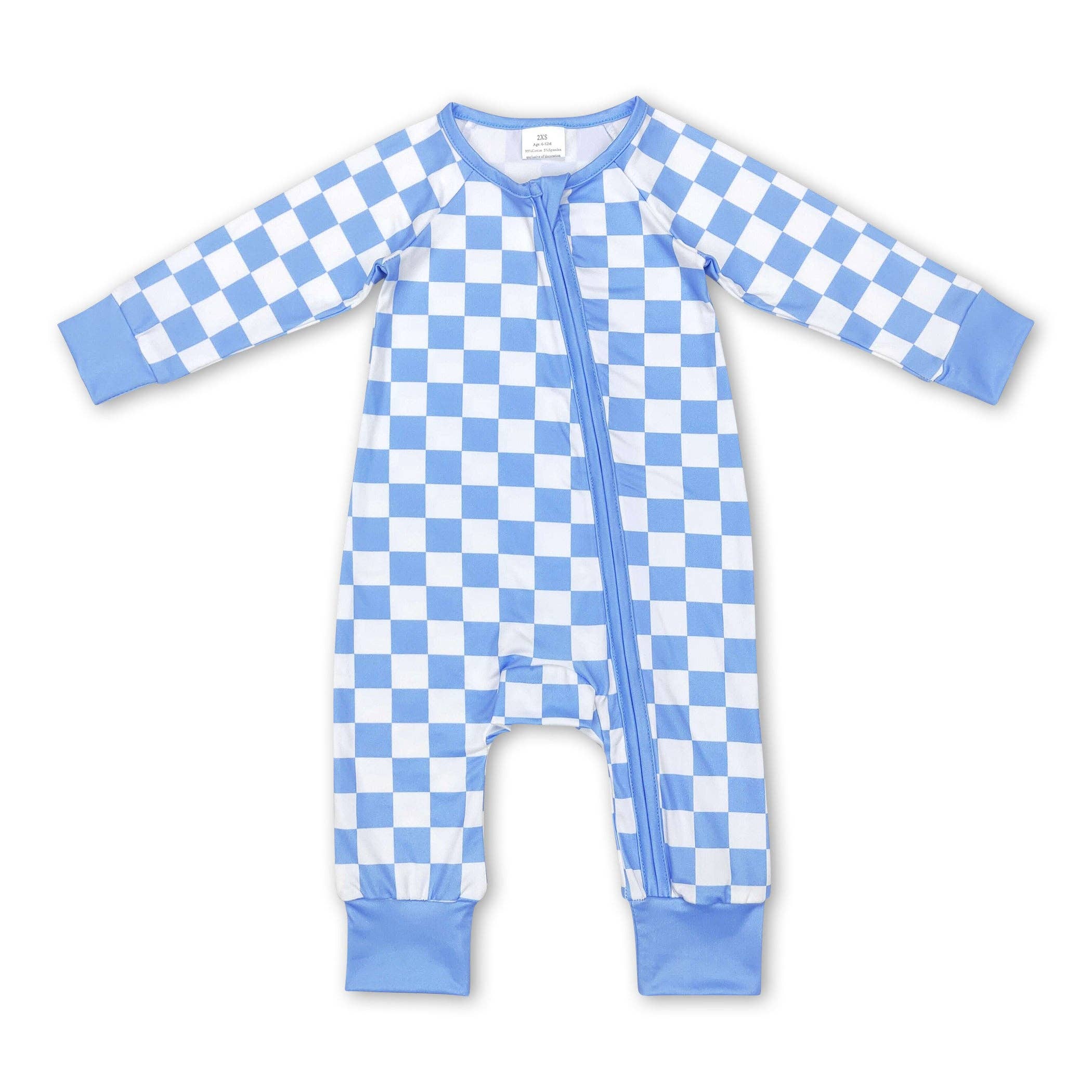 Bamboo Baby Clothing Zip Romper | Blue Checkered