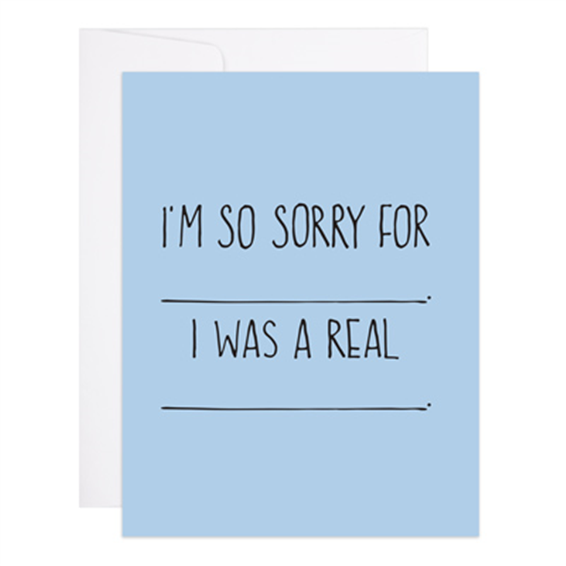 SKU: GL-106 Made in United States Color: Black and White Finish: Letterpress Is Set: Individual Occasion Theme: Apology & Sympathy Recipient: Everyone Season: Year-Round Special Feature: Blank Tone: Funny Weight: 17.01 g (0.6 oz) Dimensions: 12.7 x 12.7 x 0.3 cm (5 x 5 x 0.1 in)