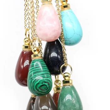 SKU: N0016-AM-G Made in United States Color: Multi-Colored Material: Copper, Gold Plated, and Stone Occasion: Birthday and Mother's Day Stone Type: Amethyst, Crystal, Lapis Lazuli, Malachite, Obsidian, Opal, Rose Quartz, Tiger's Eye, and Turquoise Style: Bohemian and Vintage Theme: Nature Weight: 45.36 g (1.6 oz) Product Materials: Plastic-free Packaging: Plastic-free and Recyclable Production: Ethically sourced, Fair trade, Low-impact transport, and Renewables-powered