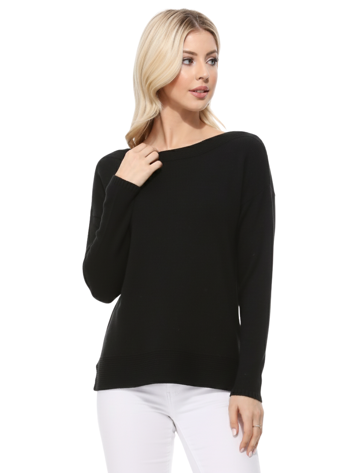 See-Through Boat Neck Knit Top with Side Slit MK3564