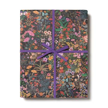 A cute and slightly fancy wrapping paper featuring a dark woodland floral pattern with wildflowers in a nighttime meadow, humming a tune, most likely en Français. Use it to wrap wedding gifts, baby shower gifts, or for your everyday gifting desires. • Gift Wrapping Sheets • Available as single sheets or rolled sets of 3 sheets • Single sheets will be collectively rolled and wrapped in paper for protection in transit. Rolled sets of 3 will be shrink wrapped. Ordering by sheet allows us to ship your wrap plastic-free and with minimal packaging. As a result, we're able to offer a lower price when selecting this option. • 19 x 27.5" • 70# uncoated matte paper • Printed in the USA