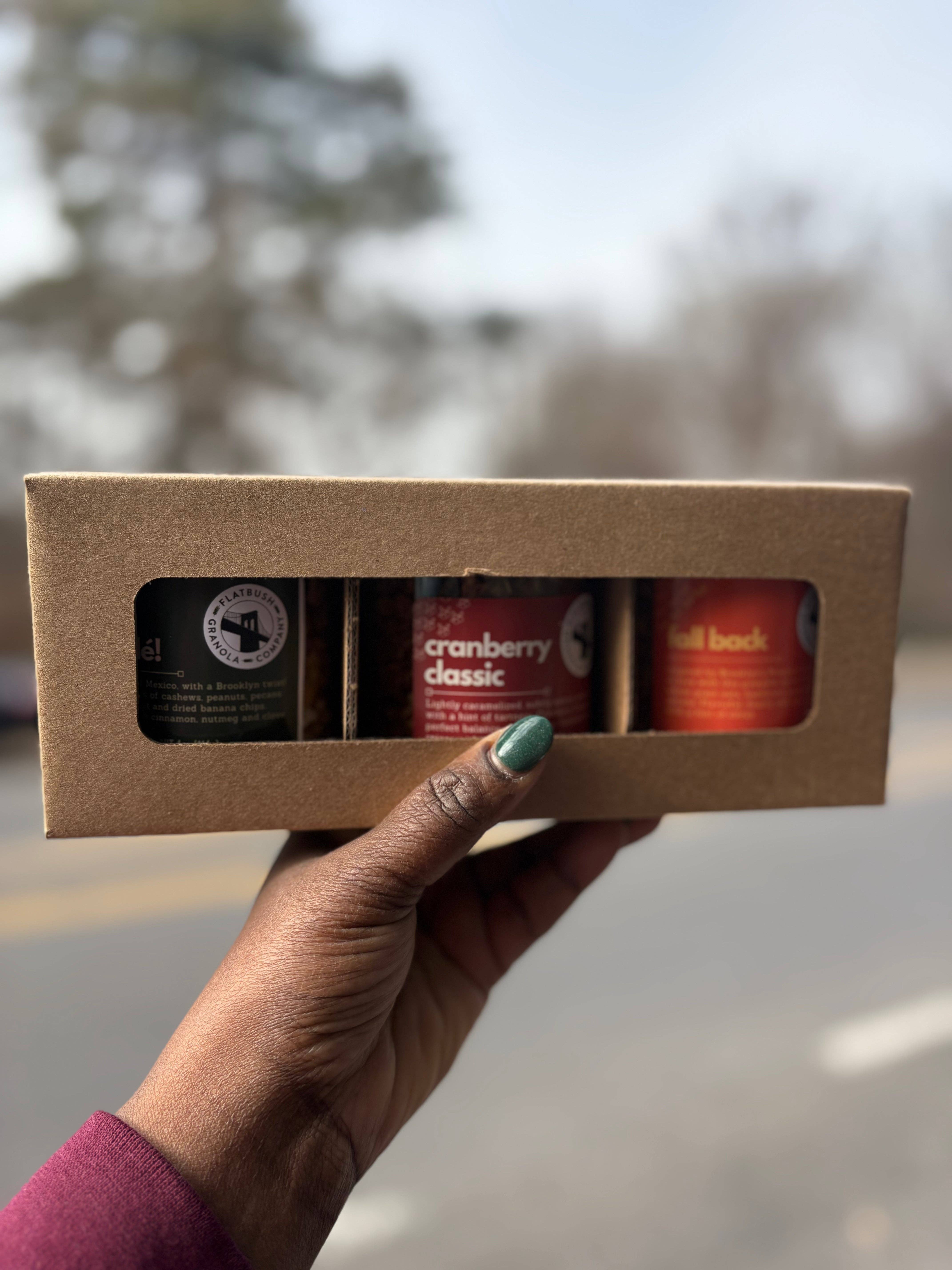 RISE AND FLY with protein-packed, clean ingredient granola sweetened only with maple syrup. Try all 3 flavors with our variety pack. 12 gram of plant protein Organic, glyphosate free oats 25% less sugar than the leading granola * Original sweetened only with maple syrup for a sweet and salty crunch! * Cinnamon: a touch of organic cinnamon for delicious protein crunch. * Maple Butter drizzled with sunflower butter and maple syrup. ALWAYS: organic, gluten-free, dairy-free, non-gmo, NO refined sugars, and NO high potency sweeteners such as stevia, monkfruit, or "natural" flavors. One 8 ounce bag of each flavor.