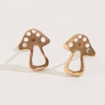 Mushroom lovers rejoice - for these mushroom post earrings are adorable. Some revere the mushroom for their psychedelic qualities, some for their healing properties, and some because they're simply delicious, but we love them because they're so cute. Mushrooms are having a moment, so add these fantastic fungi to your jewelry collection now. • Our bronze is a high-quality Italian alloy of copper and tin that contains an anti-tarnish compound which delays, but does not eliminate, eventual oxidation. • Available in Sterling Silver & Bronze(with sterling silver posts) • Made from Recycled Silver. • Lipped earring cards will come free with every order. Please note that earrings will not be pre-carded.