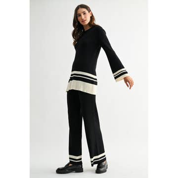 SET276Y Striped Knit Cardigan Jacket and Casual Pants Set