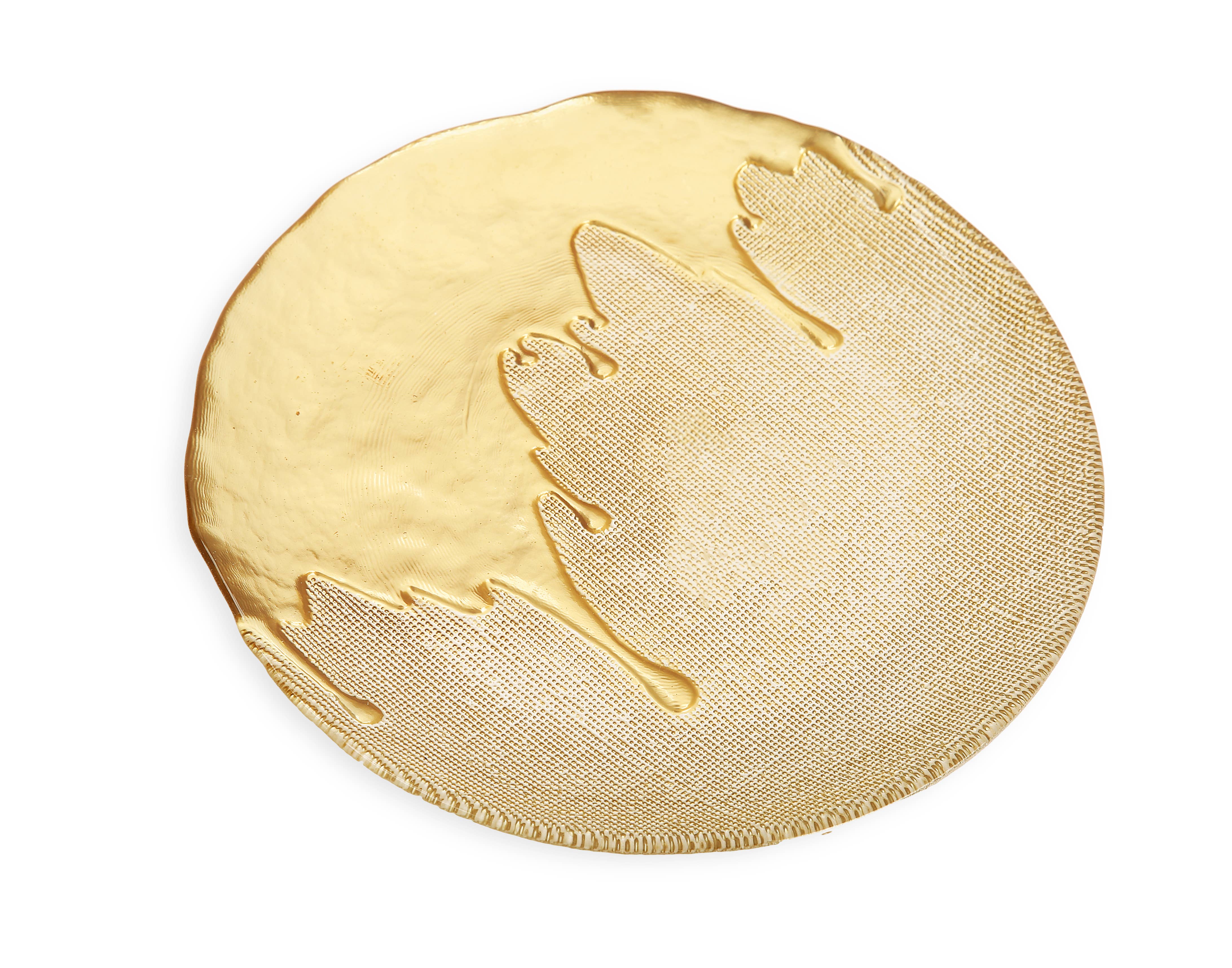 A fusion of white and gold, this set of dipped plates set a new standard for elegant dining. It features a lustrous finish and finely rounded edges which provide this dish with modern finesse. Use these plates as a serving dish for the main course or as an underlay for a table setting. Measures: 11"D.